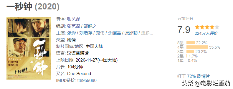 如今时隔一年半,《一秒钟》终于解决了“技术原因”,顺利和观众们见面了。