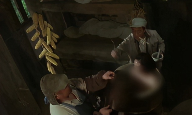 九斤想跑,但却跑不掉,接着他们几人抬着九斤做了不可描述的事情。宝根见状默默地走出了屋内,关上了门,九斤在屋内一直叫喊着宝根的名字,但宝根始终都无动于衷。