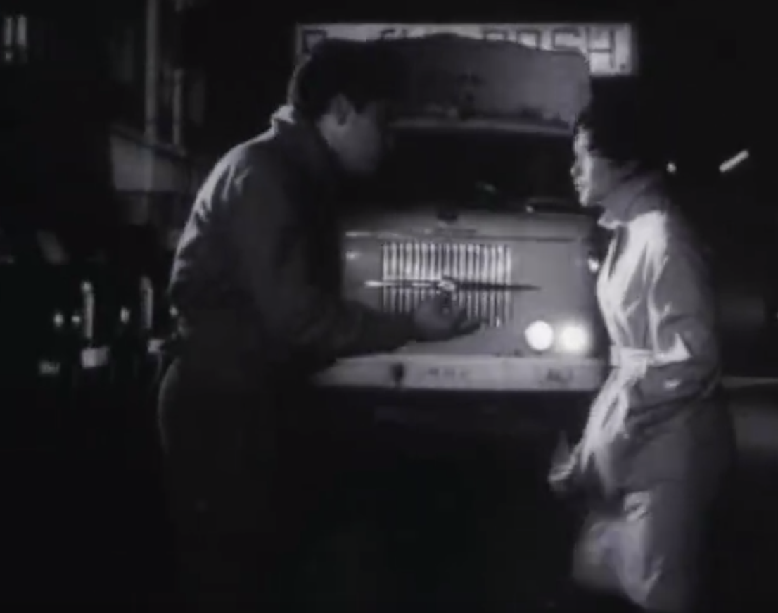 可以看出,电影为这个接吻场面,还是动了一番脑筋的。镜头里,阿兹姆与女孩在厂区码头上边谈边走,这时身后开来一辆卡车,裹挟着一种危险,迫近着两个人。在电影设置的一个陡然出现的危机场景中,这一对已经心灵契合的男女不得不向两边闪开,躲开碾压过来的突如其来的风险。
