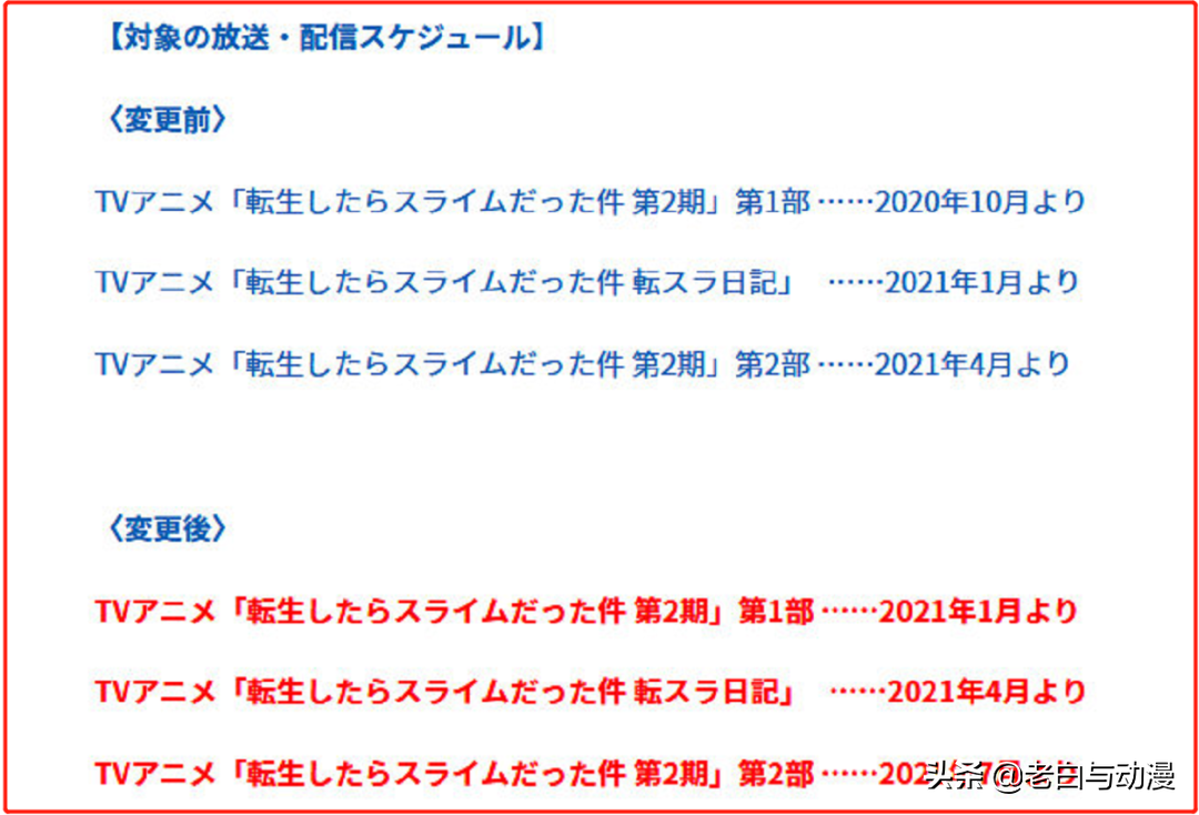 也就是说史莱姆第二季将在2021年一月开播,看来今年十月咱们是看不到萌王了,另外史莱姆这次也是分割放松,原第二季上半部分放在10月,现在延期改到1月;而第二季第二部分原放在明年4月,现延期改到明年7月!也就是说第二季将定在2021年1月和7月播出。