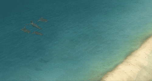 爹妈互相依偎着,目送成年的儿子走向大海,在海龟的簇拥下向远方游去。