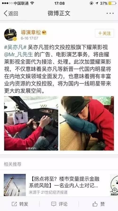 六月份的时候吴亦凡深陷负面新闻风波,耀莱关键时刻签了他,也算一种支持,妹子让亲爹签了吴亦凡也是蛮厉害的,当然更多是耀莱影视综合考虑下才会签下吴亦凡。