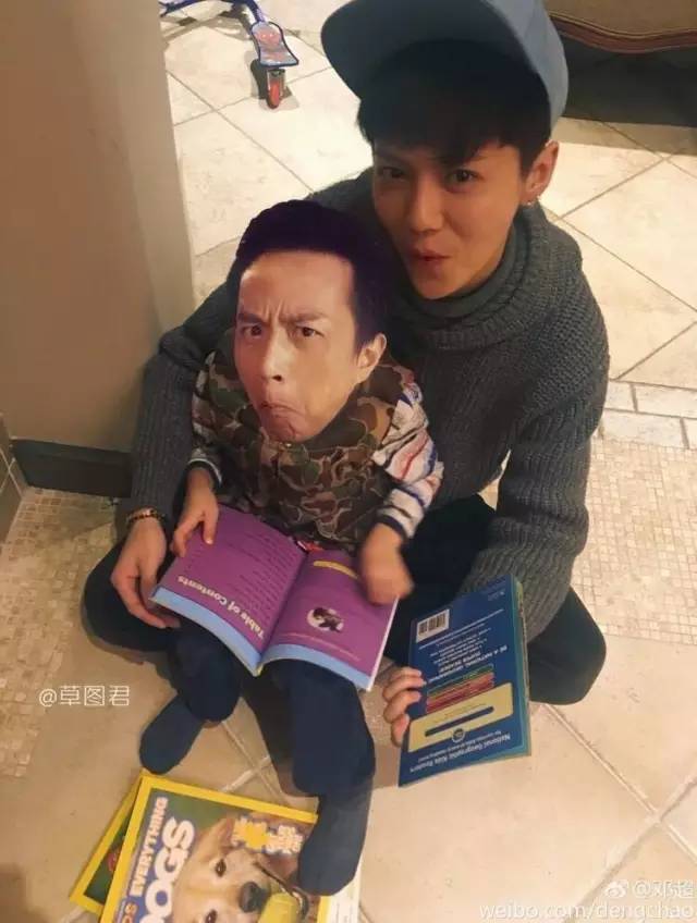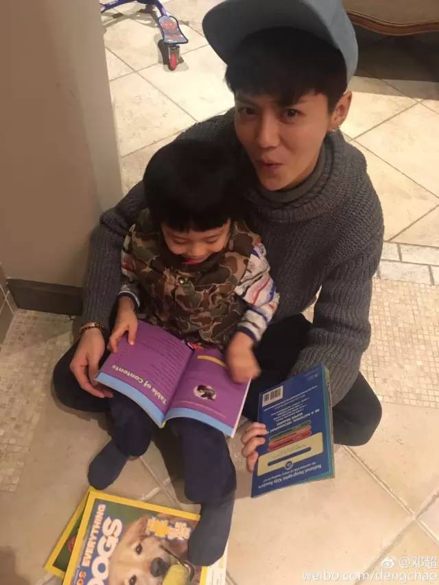 配图里鹿晗抱着等等,陪等等看书。超哥继续发扬在评论里搞事情的风格,说这是等等和他弟弟