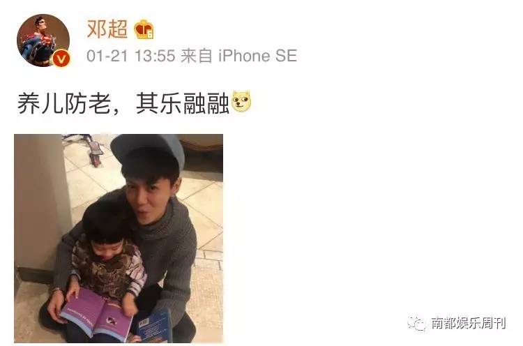 邓超昨天发了一条微博:“养儿防老,其乐融融。”