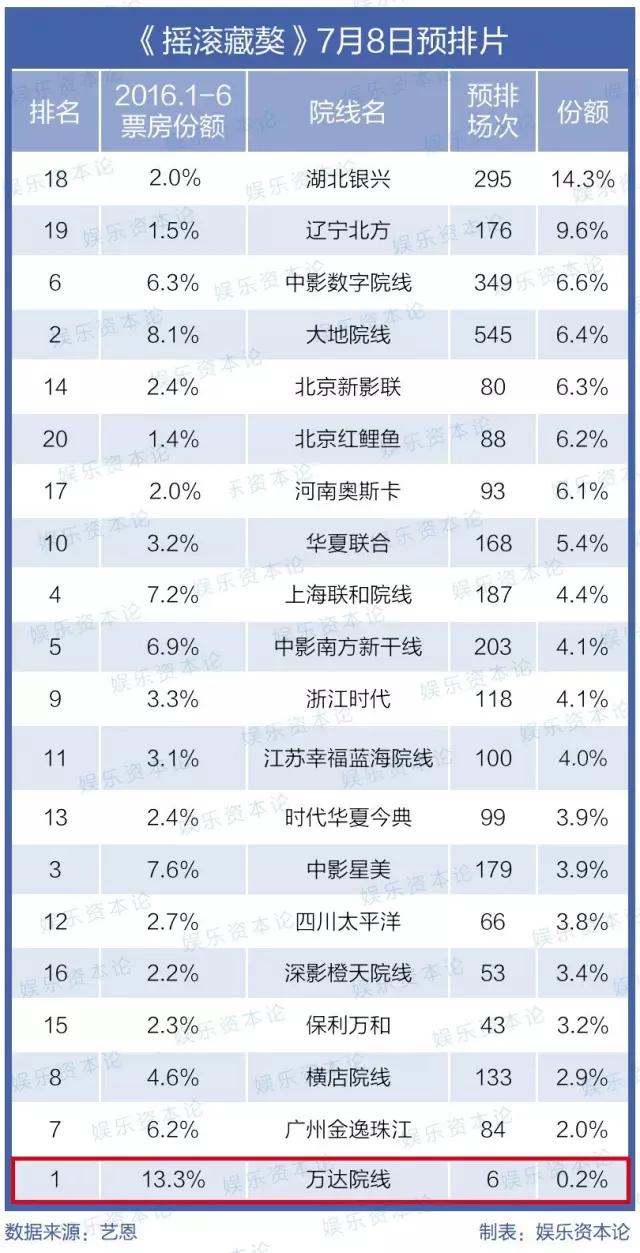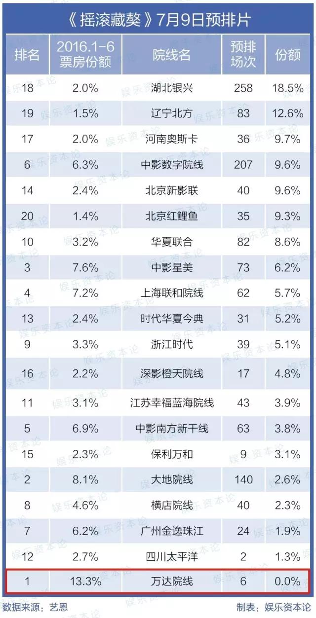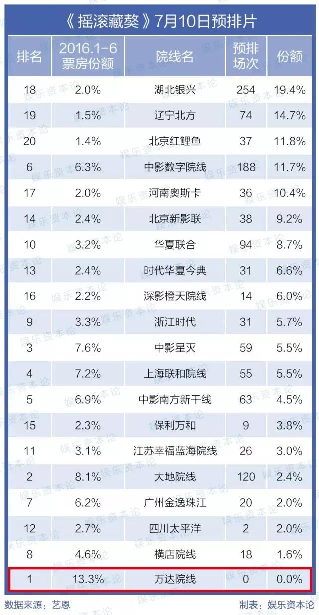一份来自艺恩网的数据显示,在其他院线都有预排片的情况下,万达院线对《摇滚藏獒》的排片为个位数。