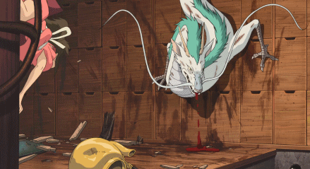 在电影里,偷了钱婆婆印章的小白龙身受重伤,要载着千寻从汤婆婆的屋子跑到锅炉房,从锅炉房顶掉到了屋子里。
