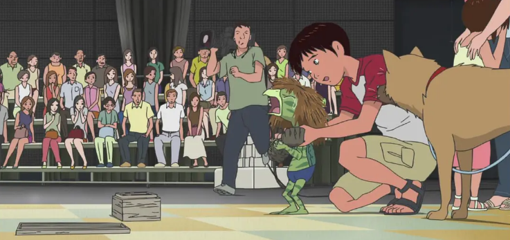 在导演细腻的视角下,观众才会发现河童和黄狗受伤的心灵,站在他们的立场去看待人类的侵犯。对于人类收藏家来说,河童的断臂是他炫耀的资本,对于河童来说,那断臂是自己父亲冰冷的遗骸……在一切荒唐自私的场景下,弱小的河童发出悲鸣:“人类从我们这里抢走水和地,然后是风和天空,连神的居所也占为己有,作为交换肯定是要失去灵魂吧。”