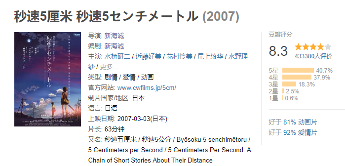 《秒速五厘米》,新海诚作品的高峰。