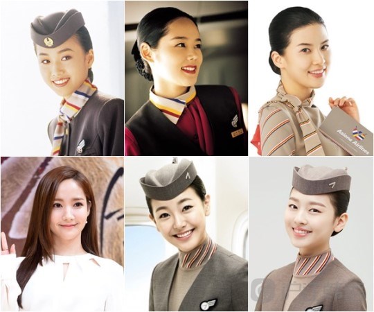 虽然没有像韩亚航空一样的流派,但是以大韩航空模特活动的女艺人也很多。最具代表性的是朴敏英、尹晶喜、郑柔美等。特别是朴敏英在2006年被选拔为电视广告专属模特。当时大韩航空方面发表了选择模特的理由“东方的端庄和崭新的形象很符合大韩航空干净高级的服务精神”。