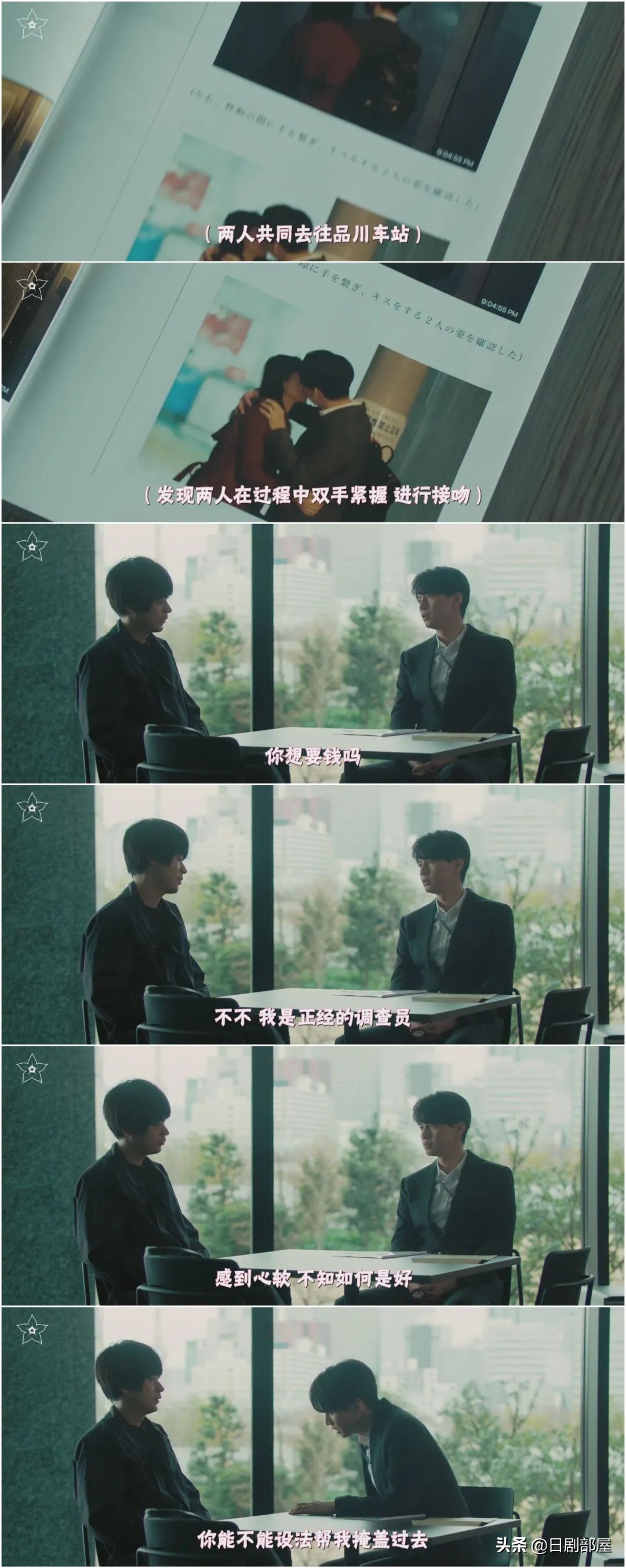 今之濑说明了来找恭一的原因,拍到了他出轨的照片,但又不忍心直接告诉他的妻子,其实是想和前辈来个交易。