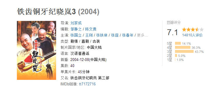 无奈,如此重头的一部电视剧却被冷落多年,笔者从未看见过讨论此剧的文章和剧评,电视台重播次数几乎为零。抛开其他因素,单从豆瓣平台上就可看出此剧被忽视的惨状。