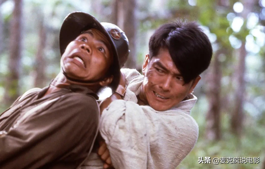 片中的中校由英叔扮演,也是条硬汉子,被敌军用枪指着想都没想就慷慨赴死,不愧是雇佣兵领导。关于英叔的个人经历,小编曾写过很多篇文章介绍过他,在此也就不再赘述了,值得一提的是,林正英也参与了《东方秃鹰》的动作设计工作,第二年还和洪金宝、元奎、元彪、元华等人一起被提名金像奖动作设计奖,但最后输给了《a计划续集》里的成家班。不过总体来说,英叔在武指领域做出的成就是不可被低估的,后来随着僵尸片的没落,直接触发了人们对他的持久怀念。