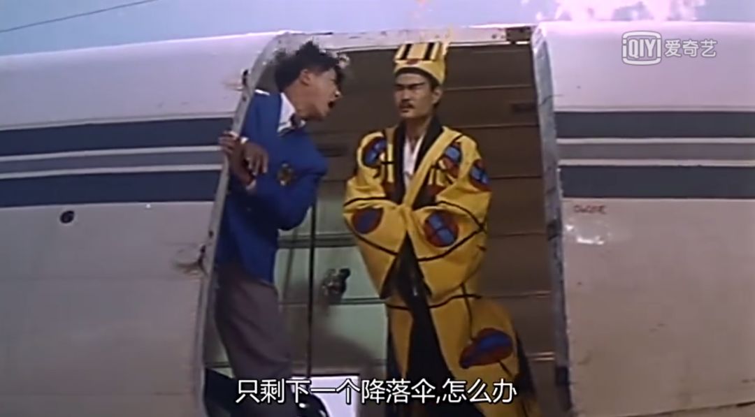 飞机上只有两个降落伞,但是却有三个活人加一具僵尸。飞行员拿着枪逼迫阿森和林正英交出其中一个降落伞,并且命令他们为他穿上,之后就得意洋洋地跳下了飞机。