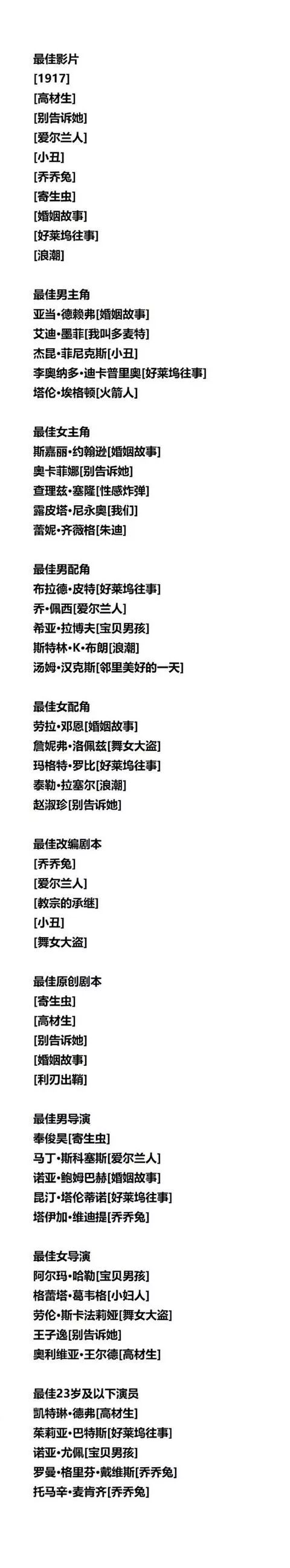附完整提名名单:
