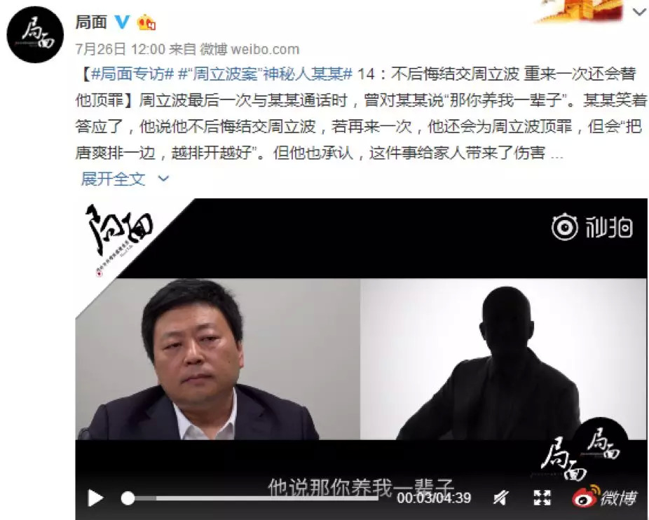 但神秘人某某如今接受王志安采访,说出的却都是“周立波就像小孩子一样”、“再来一次还愿意为周立波顶罪”、“愿意养周立波一辈子”。