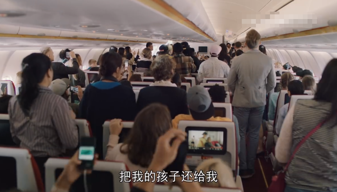 开场的剧情是外国某航空公司超额售票,导致一位带着宝宝的中国妈妈被赶下飞机,机上不少乘客都拍下了视频。