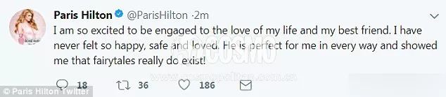 向来爱得高调的paris hilton这次更加高调,答应求婚之后,一连数条ins状态都是满屏桃心的即视感,当然也少不了秀钻戒的美照。