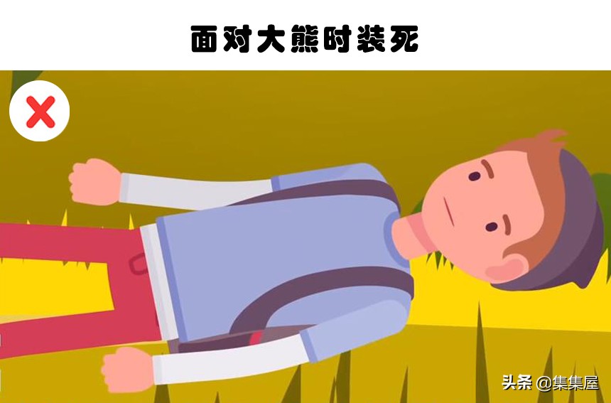 当你在野外行走的时候,突然听到了一些低吟声,结果你发现了一头大熊,你会怎么做?电影里经常出现的是,要么与其战斗,要么假装死亡,并蒙混过关,又或是快速的奔跑。与其战斗当然不现实,但快速的奔跑和假装死亡的技巧虽然看起来靠谱,但却很危险。事实上,如果你快速的奔跑,反而刺激大熊来追逐你,将你视为猎物,而且你的速度根本比不上大熊;而装死也并没有用处,因为在熊认为你侵犯它的领地的情况下,它依然会伤害你。最好的方式是面对着熊,然后慢慢后退,逐渐退离熊的领地。如果熊开始追逐你,你不得不逃跑,那你最好能够围绕着大树之内的物体不断拐弯逃跑。