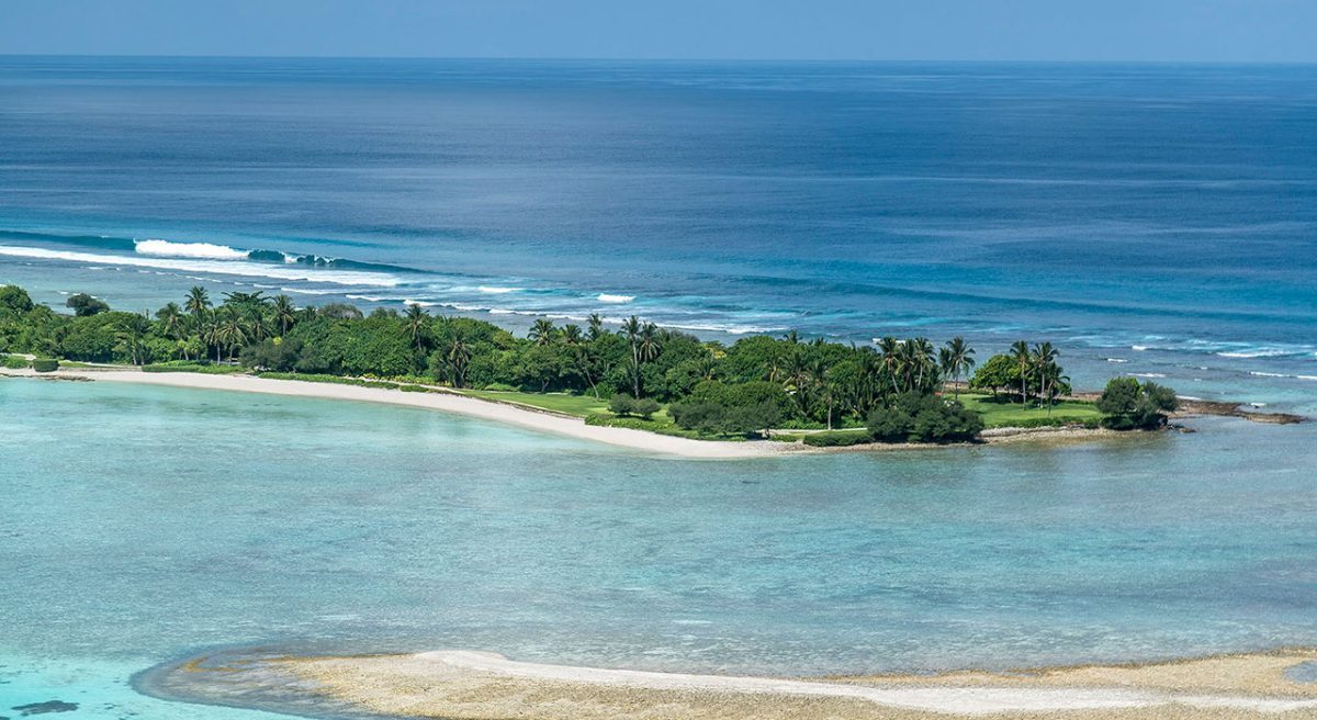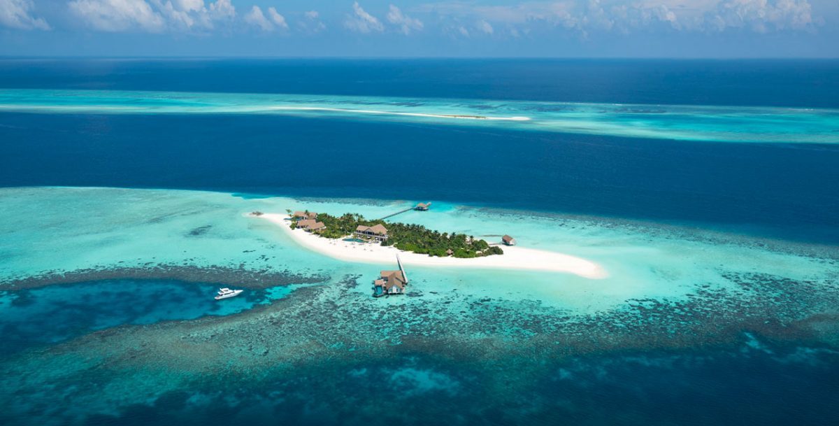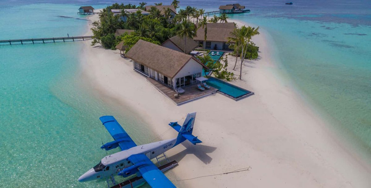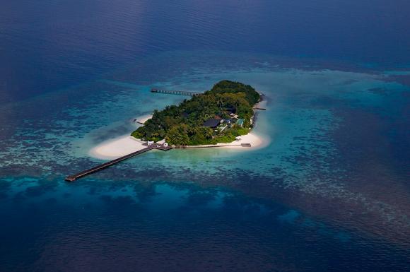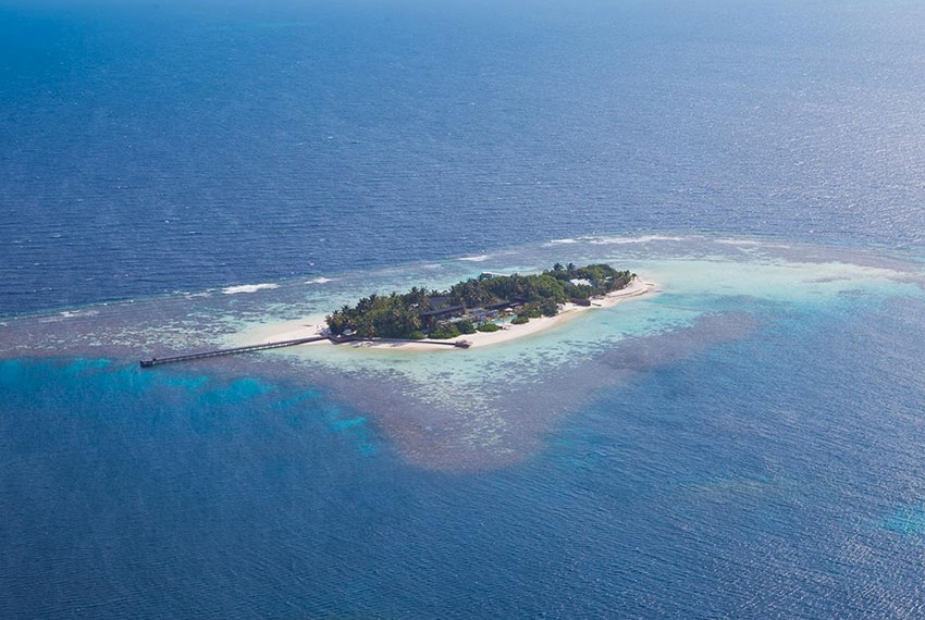 自马累出发,经过一段风光明媚的水上飞机航程,一个占地44英亩、被环礁湖围绕的小岛,一片全无污染的世外桃源便呈现在的眼前。