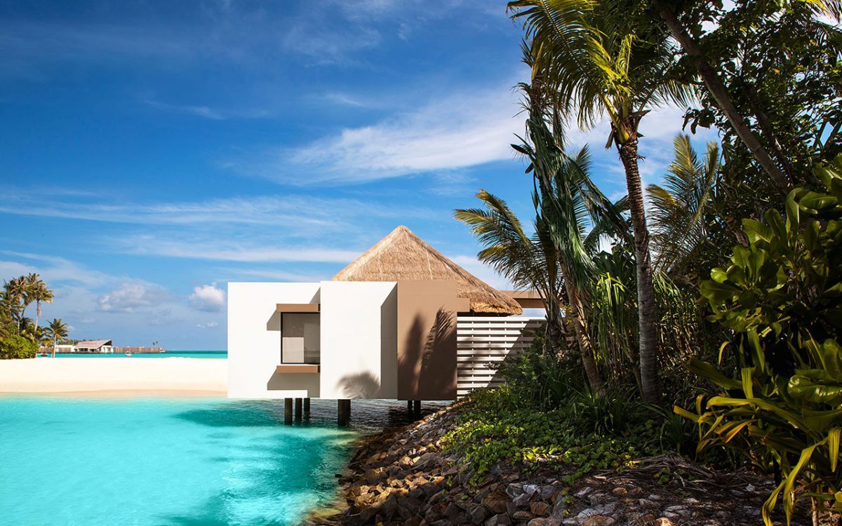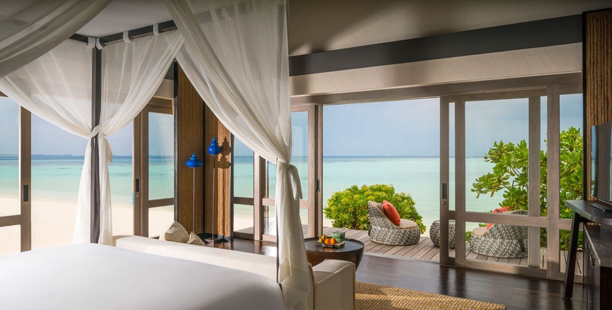 双层沙滩屋边是近在咫尺的白色细沙、清澈海水与大量珊瑚礁,即使在马尔代夫地区亦属难得。