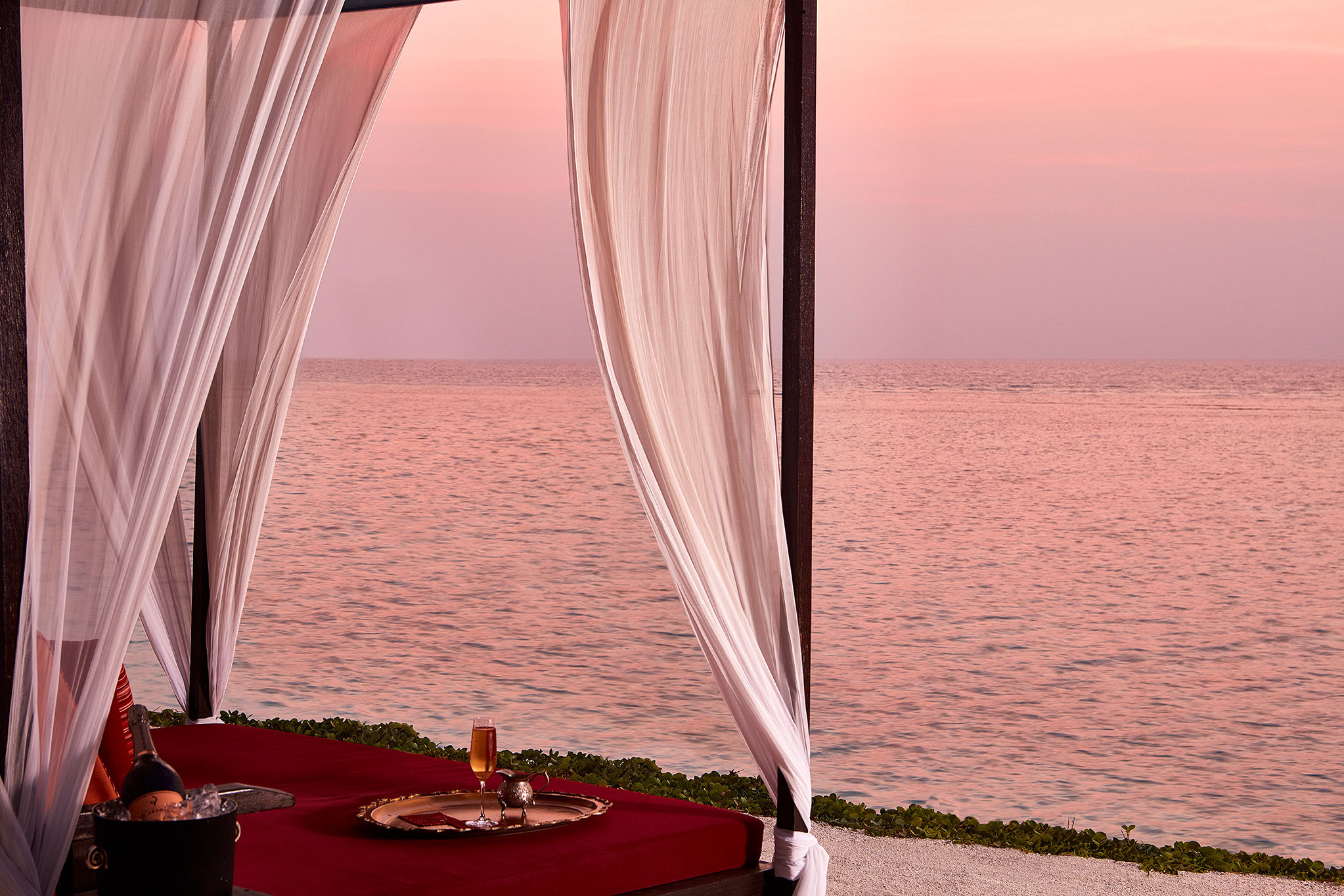 到过瑞提拉岛度假村的人一定不会忘记,傍晚之时天边那一抹瑰红。