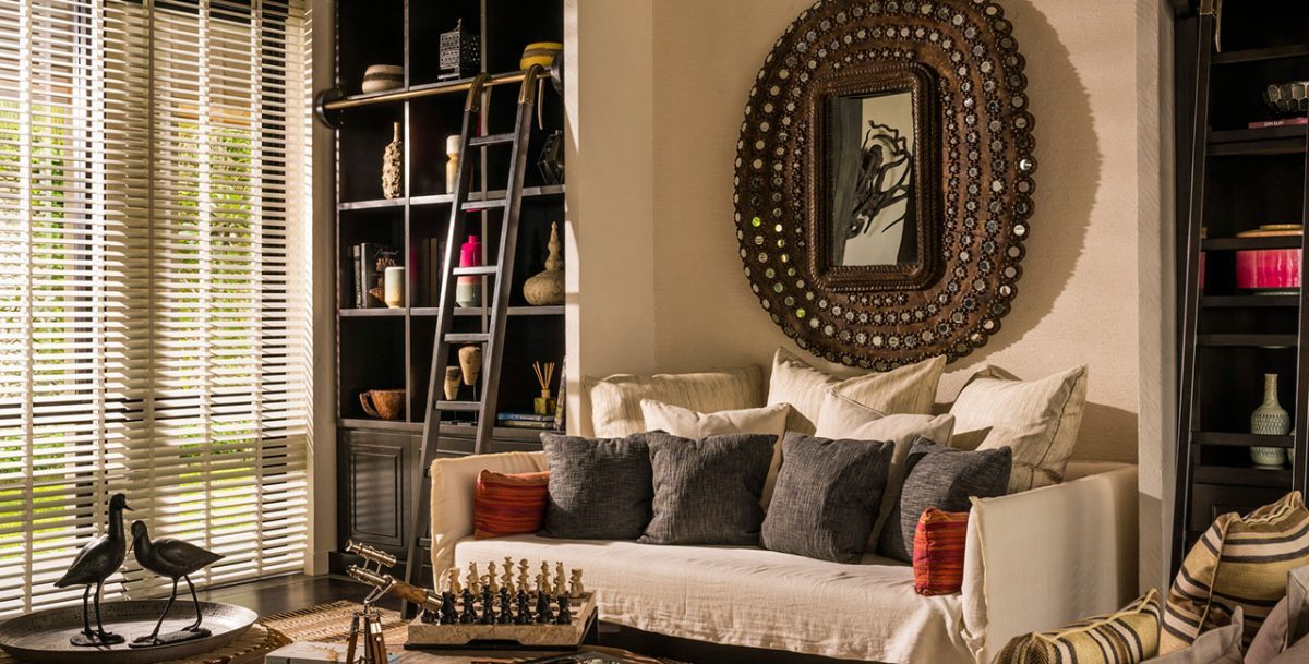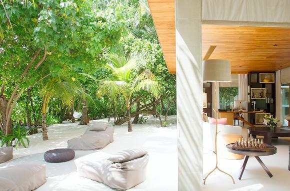 沙滩屋内设有露天起居室、餐厅、厨房、泳池平台、健身房、图书馆和loft式的休闲区域,而七间客房分布于三个不同位置:沙滩上、泻湖高处与地势更高的mezzanine套房中。