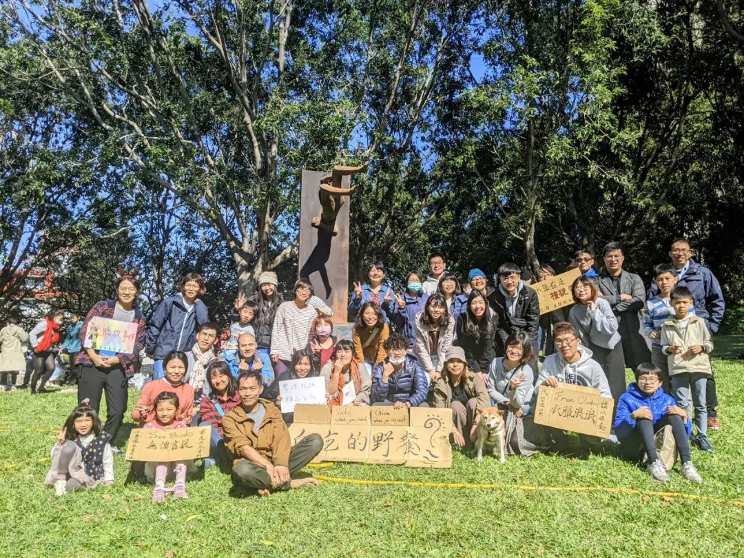 今年12月19日的这个周末,杨宗翰站在台中市丰乐雕塑公园的草坪上拍照,这里是全台湾50个“免费市集”的其中之一,人们送出闲置物品和食物,各取所需。往少了算,假设一个市集有100人参加,那么总共至少有5000人到场。