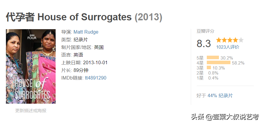 2、纪录片是电影当中比较特殊的一种题材,我们非常容易忽视它的存在,但在艺考中难免遇到。所以我们借最近热度比较高的《代孕者》来帮助大家了解,纪录片题材的影评分析。