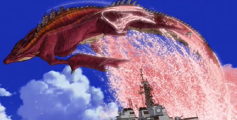 在此次的《哥斯拉奇点》预告片中,有一只海里的红色大怪兽从水面跃起,好似是一头大鲸鱼一样,这只怪兽可谓是让很多人一头雾水,因为与《哥斯拉》系列中出现的怪兽都有很大的差异性,因此也有人怀疑,这只怪兽或许是登场于1975年《哥斯拉之机械哥斯拉的反击》中的泰坦巨水龙,毕竟无论是颜色还是背鳍方面还是有相似之处的,但目前还无法确定,如果真的是泰坦巨水龙的话,毫无疑问在《哥斯拉》系列中也没有什么太大的存在感。