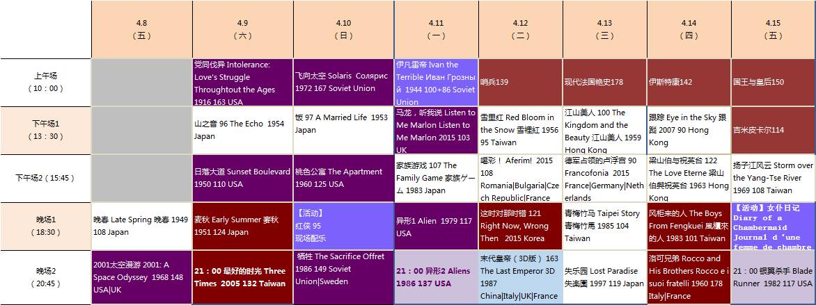 北影节电影资料馆排片,双击点击放大: