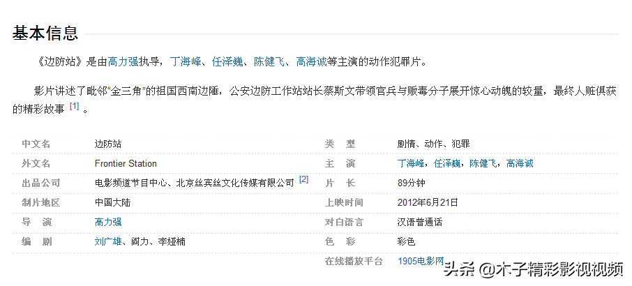 《边防站》是由高力强执导,丁海峰、任泽巍、陈健飞、高海诚等主演的动作犯罪片。影片讲述了毗邻“金三角”的祖国西南边陲,公安边防工作站站长蔡斯文带领官兵与贩毒分子展开惊心动魄的较量,最终人赃俱获的精彩故事。