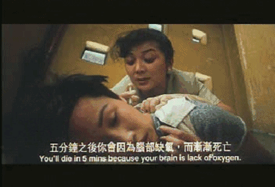 救子心切的林姨立刻让小文用枪指着自己做人质,然后一起上了天台。