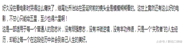 并非我夸张,2006年《生活多美好》曾经被美国电影学术权威的美国电影协会(简称afi)评价为“百年百部励志片榜首”,“影史最有力的影片top1”,远超观众所熟知的《辛德勒的名单》、《肖申克的救赎》、《拯救大兵瑞恩》等。而2004年英国bbc,也将本片列为“未获奥斯卡的最佳影片第二名”(第一名为《肖申克的救赎》)。最专业理性的影评人在评价《生活多美好》时,也禁不住感性地表达几句“温暖”、“动人”、“永不褪色”、“值得重温”,而观众,如我等,反应都是这样的。