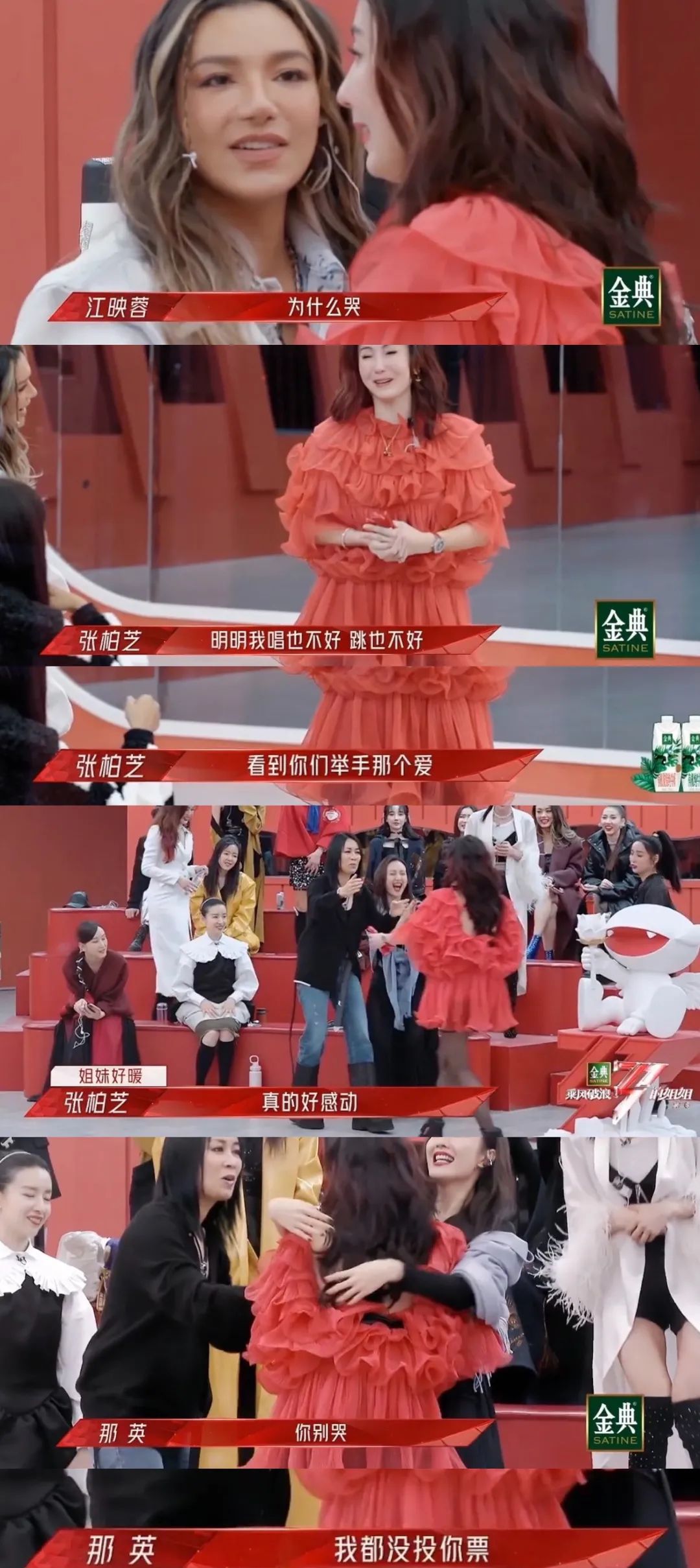 张柏芝表演完毕,回来和姐姐们哭着拥抱感谢大家为她投票,到那姐这儿,一句“你别哭,我都没投你票”,哈哈哈哈哈笑死,快速止泪第一人。