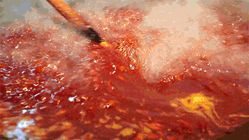 ——将荤菜和素菜放在一起熬煮,加入大量的辣椒。