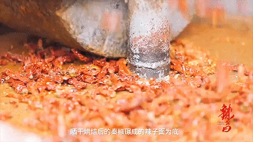 晒干烘焙后的辣椒干磨成辣子面,然后加入盐芝麻和胡椒调味,最后加入八九成热热菜籽油。