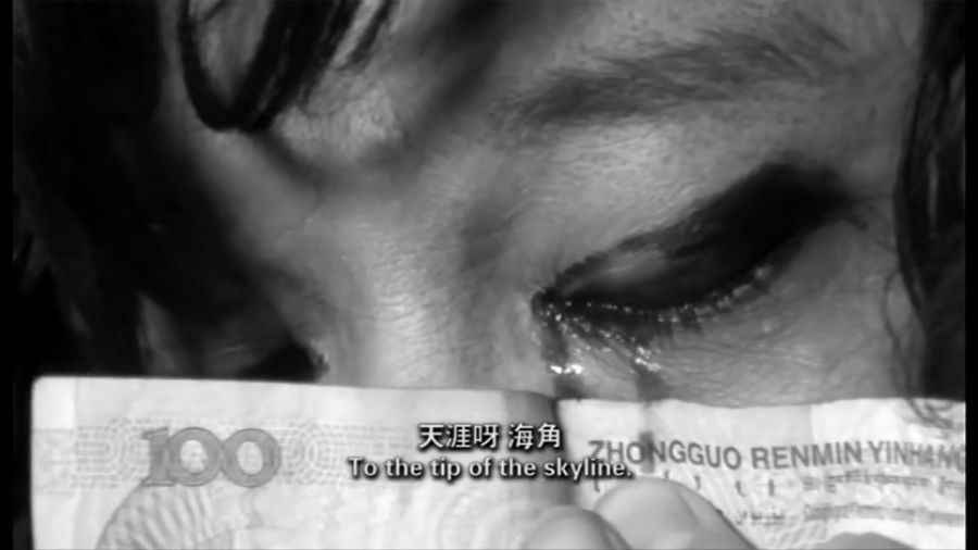 在片子的最后,他流着泪站在台上唱《天涯歌女》,用百元的人民币擦脸上的泪痕,凄恳的声音,仿佛夜半哭诉的鬼魅。