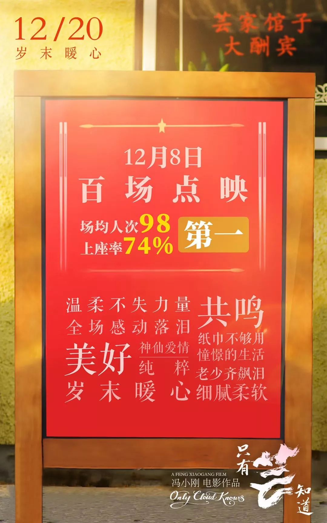 在12月8日举行的《只有芸知道》百场点映中,场均人次及上座率均排在当日第一,而从“温柔不失力量、纸巾不够用、岁末暖心”等关键词中也能看出影片收获了现场各个年龄段观众的眼泪和赞誉。