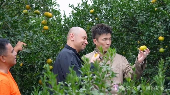 栏目组的第一站是位于会城街道南坦岛的新会柑种植地。在这里,嘉宾们被眼前郁郁葱葱的柑树所震撼,一个个圆润饱满的新会柑挂满枝头,散发着诱人的果香。他们与当地果农进行了亲切交流,详细了解了新会柑的种植技术和养护方法。
