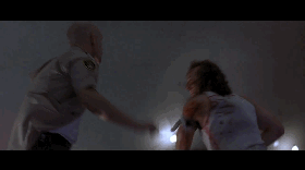 在影片第二次飞机降落时,法警小哥联系上的警力遭遇犯人们的伏击,被引爆的煤气罐将他们的车子轰上了天。