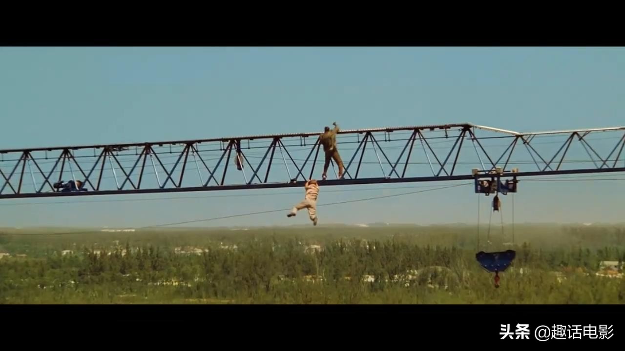 两个男人在百米高空的脚手架上追逐,黑人男子掏出手枪,向白人男子开枪,可是这才发现枪里没有子弹,于是把手枪扔向了白人男子,白人男子接住手枪后扔向黑人,二人就在脚手架上不停的追逐打斗,场面十分紧张刺激。