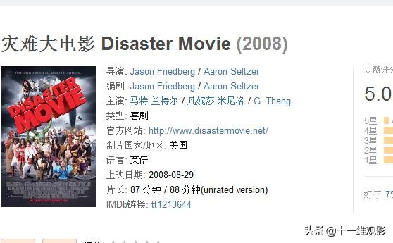 昨天跟朋友一起聊天的时候说到电影这个话题,当时朋友问了个问题说,你见过最奇葩的电影名字是什么吗?说实话,这个十一维还真的没注意过。于是朋友说了一部电影《灾难大电影》,没错电影名字就是这个,出于一种好奇的心理,十一维去看了一遍这部电影。怎么说呢,史上最烂电影?史上最恶搞电影?史上最搞笑电影?貌似都可以安在它头上,貌似也都不恰当。只能说全片水平参差不齐,是个大杂烩吧。