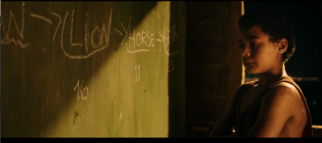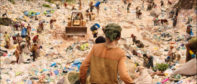 画面切换到垃圾场,开头片中的小男生就生活在这里,靠捡垃圾中的值钱物为生。他叫拉斐尔。